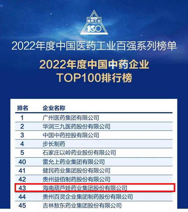 k1体育药业集团连续4年荣登“中国中药企业TOP100排行榜”,排名上升至第43位